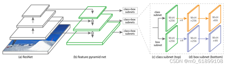 RetinaNet RetinaNet认为,基于直接回归的方法性能通常不如基于候选区域方法的原因是,前者会面临极端的类别不平衡现象。基于候选区域的方法可以通过候选区域过滤掉大部分的背景区域,但基于直接回归的方法需要直接面对类别不平衡。因此,RetinaNet通过改进经典的交叉熵损失以降低对已经分的很好的样例的损失值,提出了焦点(focal)损失函数,以使模型训练时更加关注到困难的样例上。RetinaNet取得了接近基于直接回归方法的速度,和超过基于候选区域的方法的性能。
