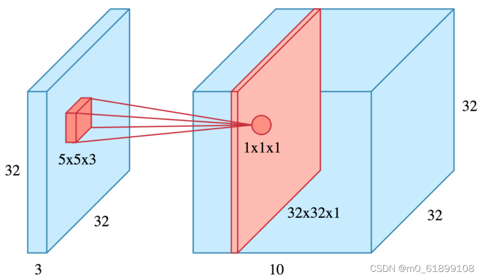 - 感受野(receptive field) F,即滤波器空间局部连接大小。