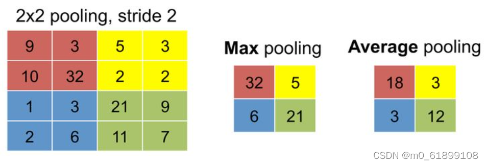 - 减小特征图大小。汇合层对空间局部区域进行下采样,使下一层需要的参数量和计算量减少,并降低过拟合风险。