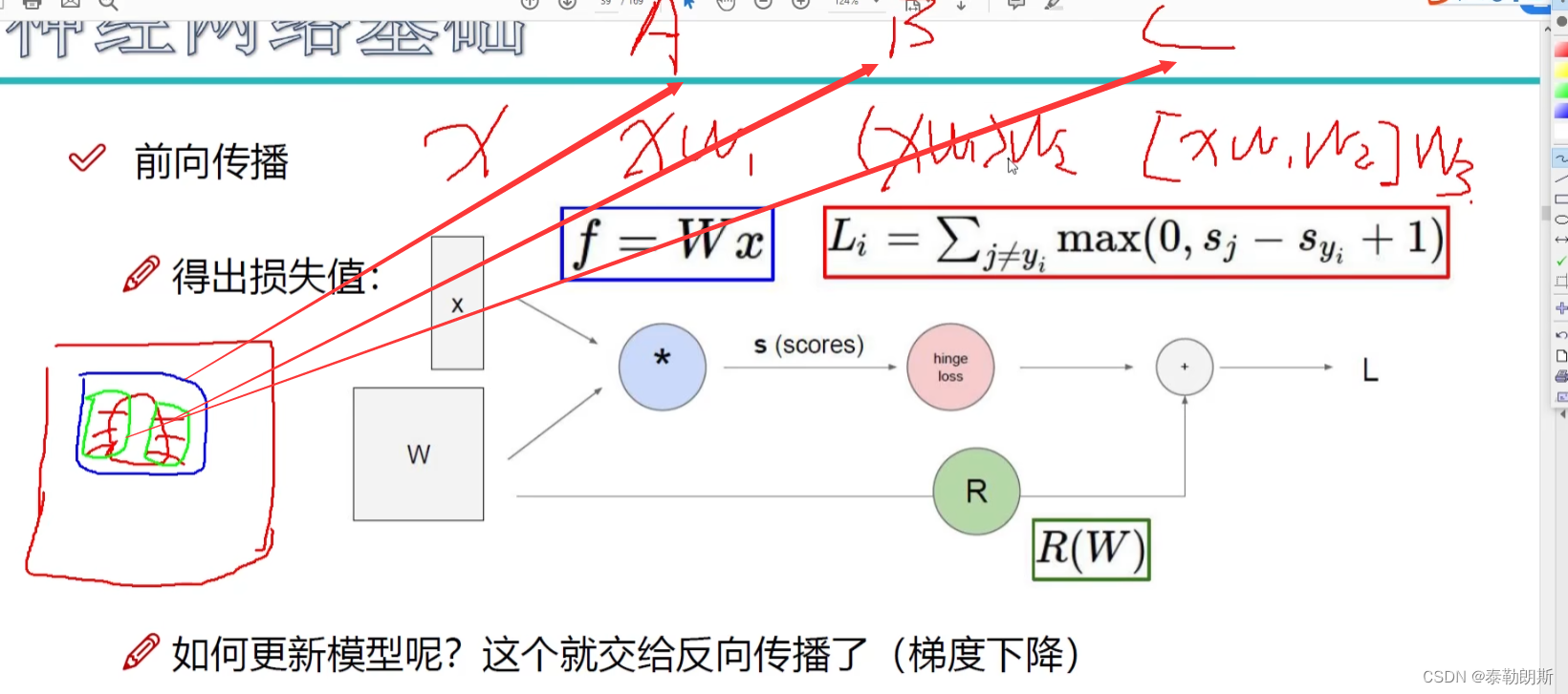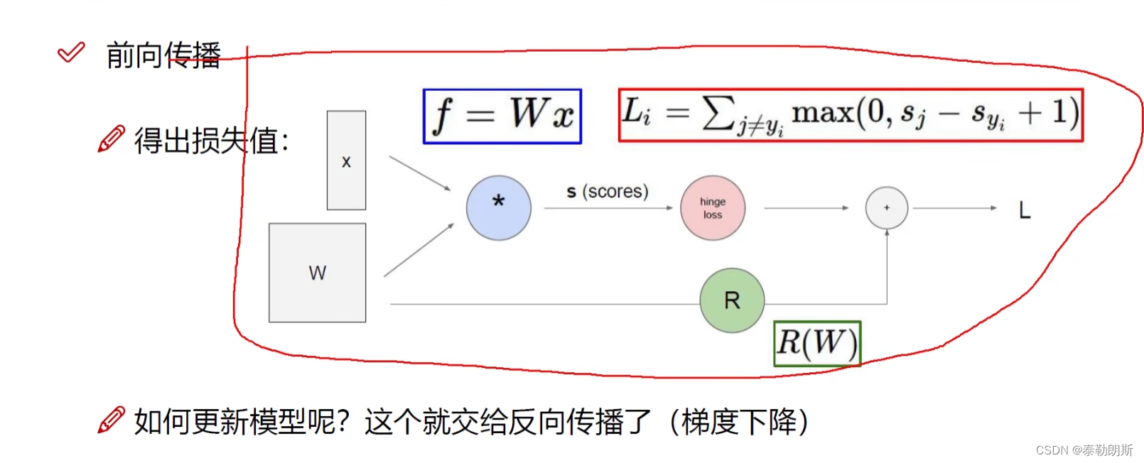 Sj-Sy=其它类别减去正确类别,+1 代表加了一个偏置,正确类别至少比错误类别高1以上,才是没有损失的。