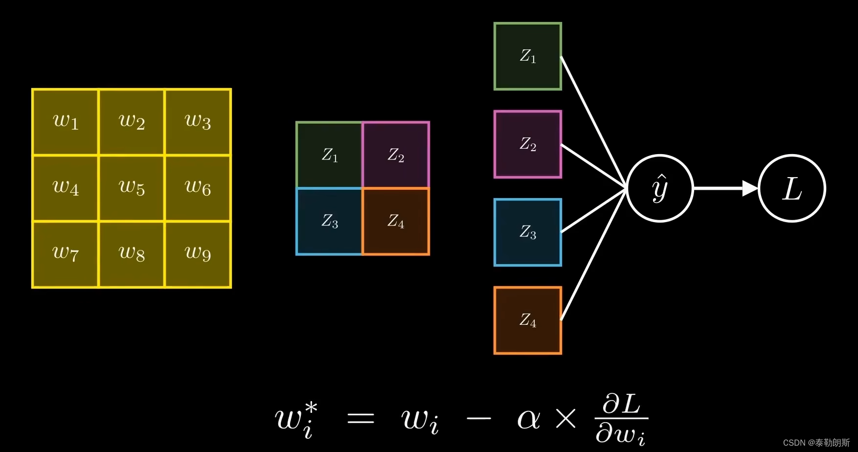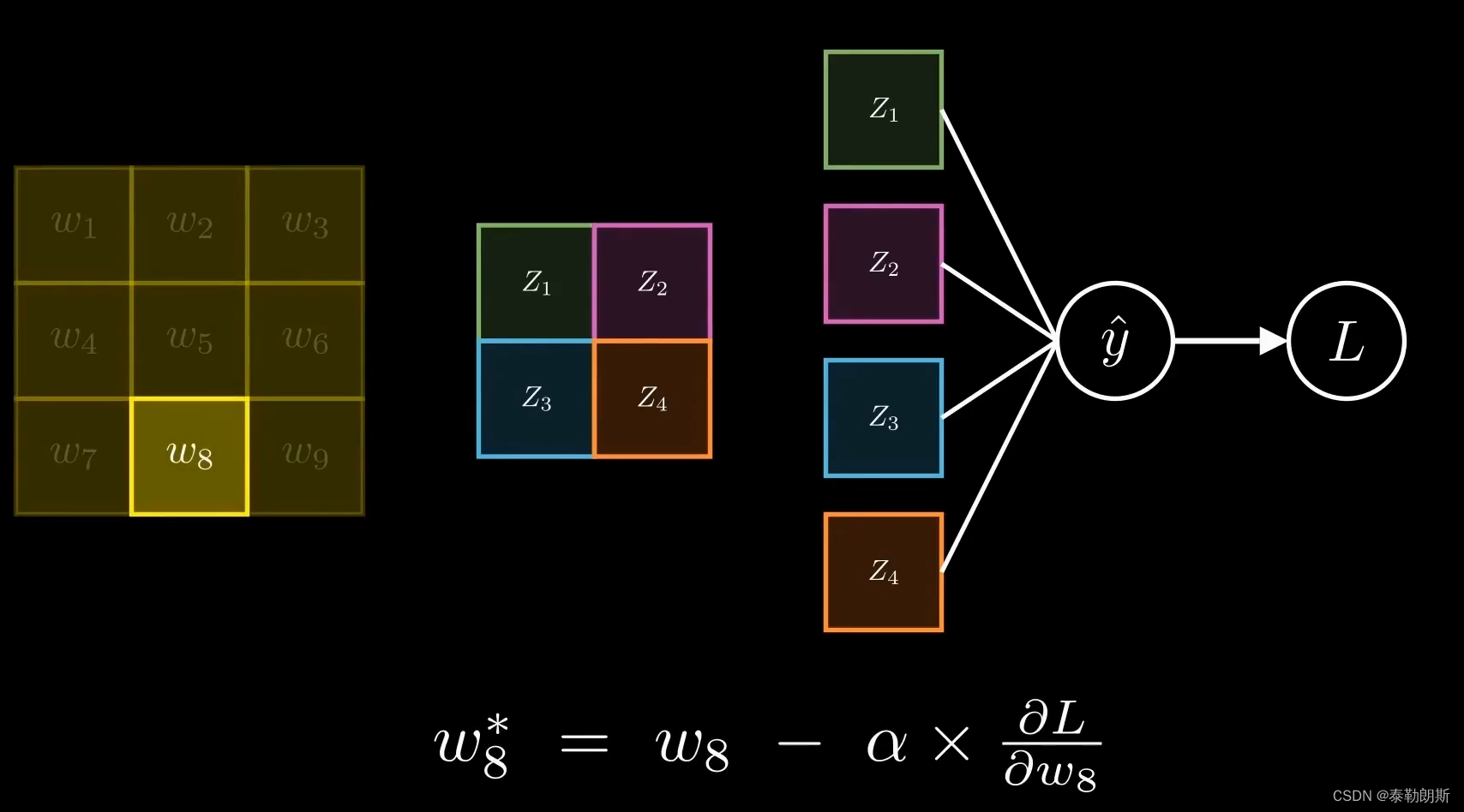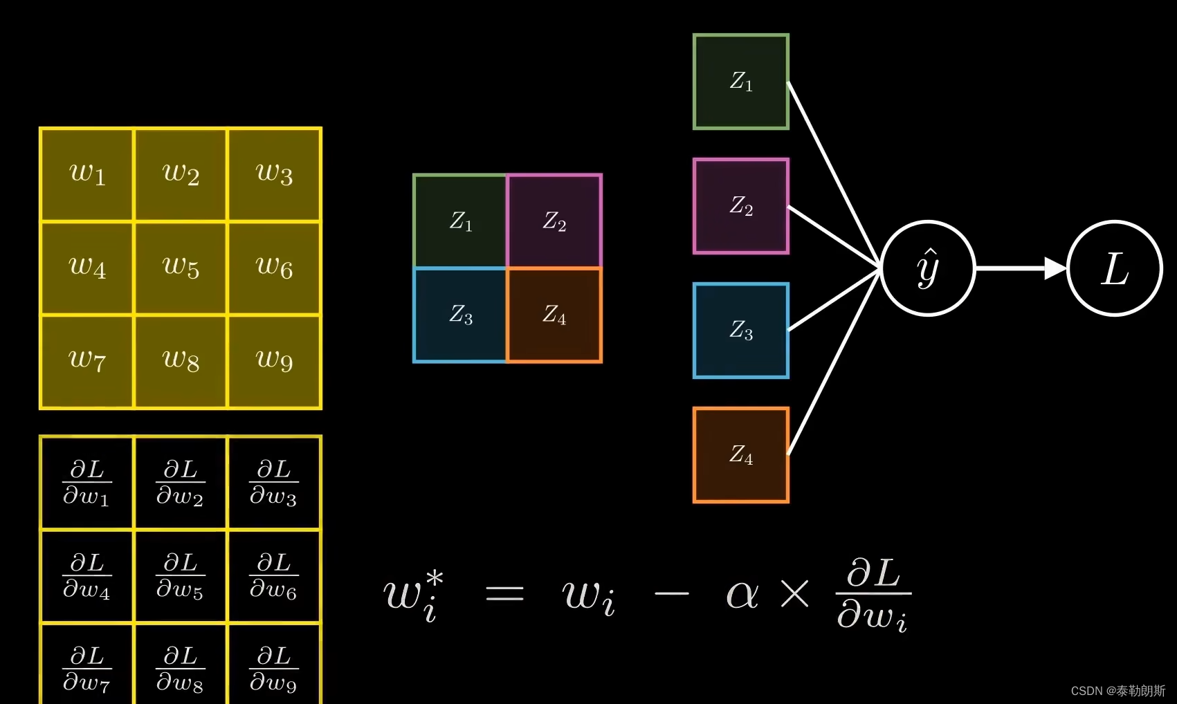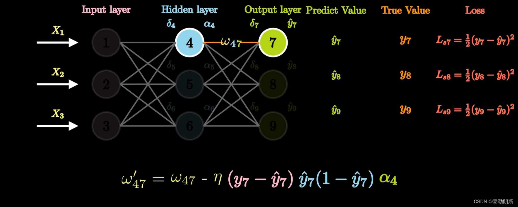 最后求出新的权重,下面参数是学习率也就是步长