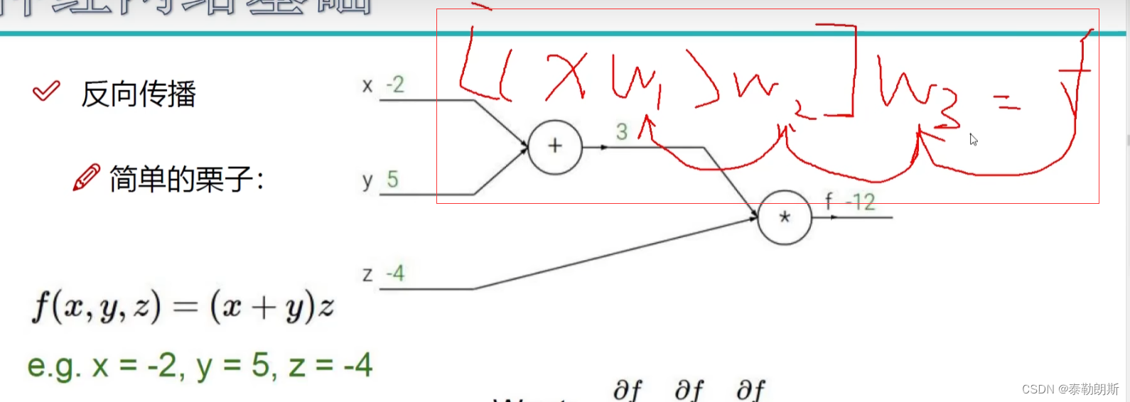 实际神经网络中,从后往前传播