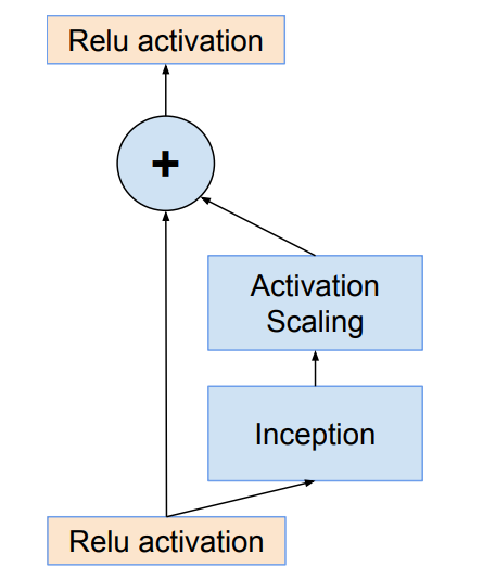 通常,将残差放缩因子定在0.1到0.3之间去缩放残差块输出。即使缩放并不是完全必须的,它似乎并不会影响最终的准确率,但是放缩能有益于训练的稳定性。