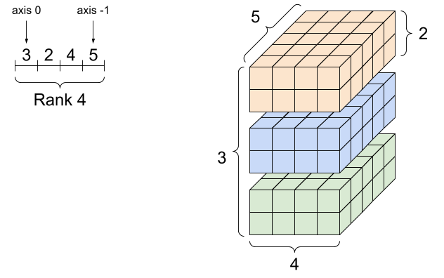 >>> rank_4_tensor = tf.zeros([3, 2, 4, 5])