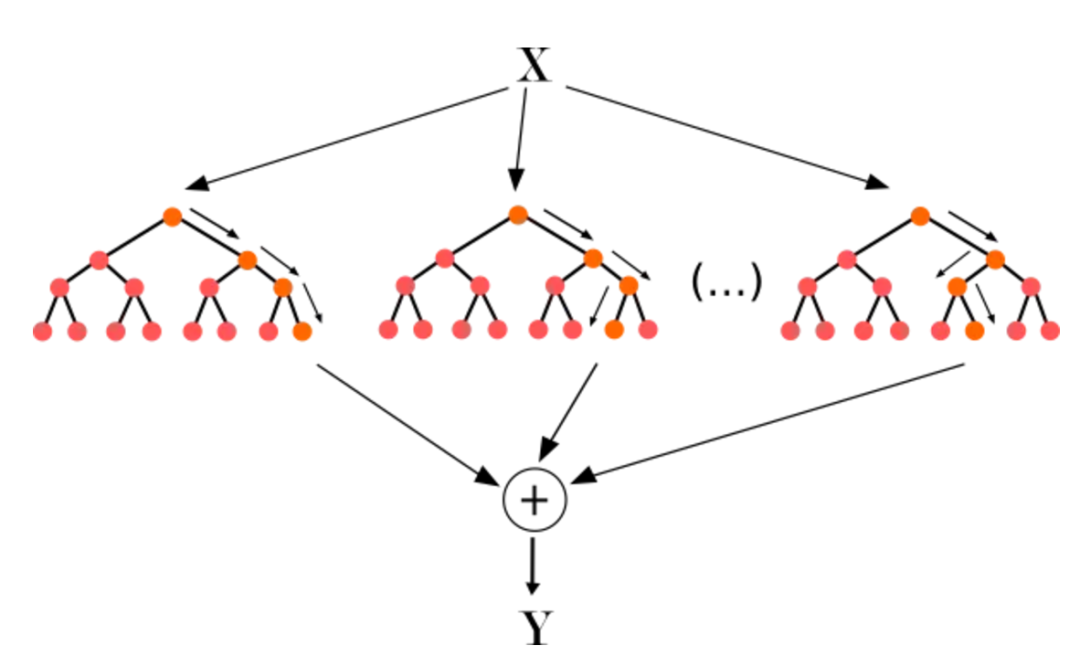 ▲ 随机森林的示意图,本质上是集成和自助,多个随机变量的决策树给出最后综合的预测结果。随机森林通过Gini重要性来衡量一个特征在决策树中有多频繁地被用于分裂数据,越频繁的特征则是越重要的。关于决策树与随机森林的原理及代码讲解可以点击上方图片跳转。