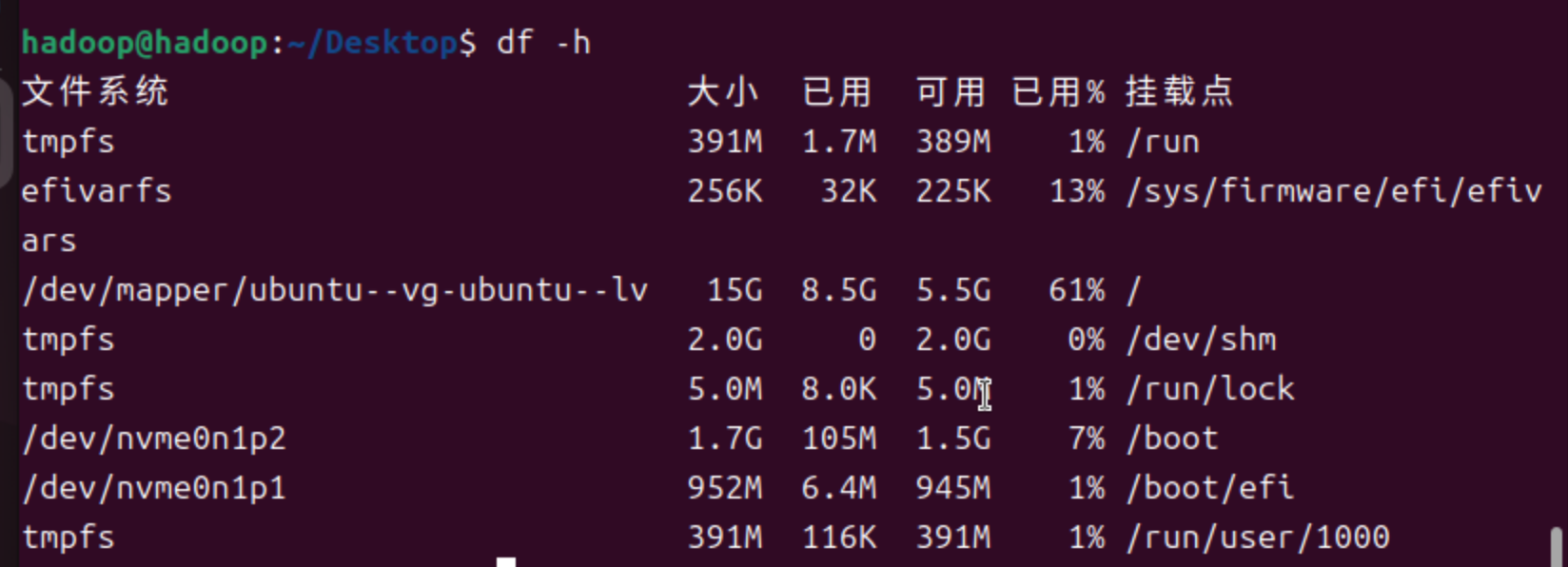 lvextend -L 10G /dev/mapper/ubuntu--vg-ubuntu--lv //增大或减小至19G lvextend -L +10G /dev/mapper/ubuntu--vg-ubuntu--lv //增加10G lvreduce -L -10G /dev/mapper/ubuntu--vg-ubuntu--lv //减小10G lvresize -l +100%FREE /dev/mapper/ubuntu--vg-ubuntu--lv //按百分比扩容 resize2fs /dev/mapper/ubuntu--vg-ubuntu--lv //执行调整 -
