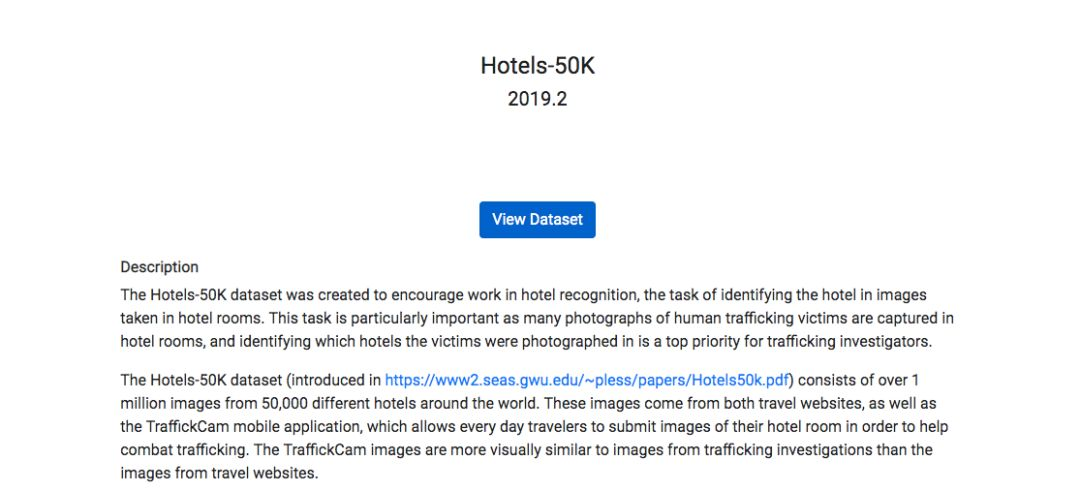 用户可以点击数据集,查看数据集详情。点击「View Dataset」跳转链接,查看该数据集相关链接,比如 GitHub 项目等。