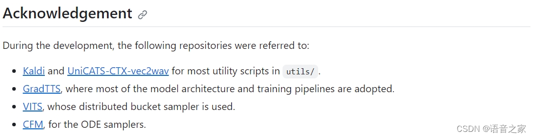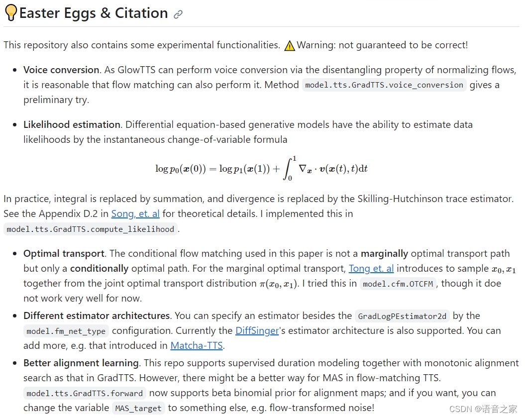 https://github.com/cantabile-kwok/VoiceFlow-TTS(持续更新中)rectified flow matching 与 flow matching 对比效果。rectified flow matching 与 grad-tts 对比效果。项目实现的参考信息,可以看到该项目做的工作很完备。VoiceFlow框图。