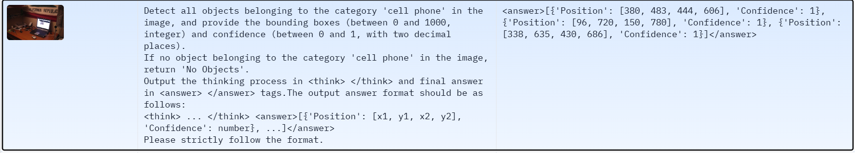 <think> ... </think> <answer>[{{'Position': [x1, y1, x2, y2], 'Confidence': number}}, ...]</answer>