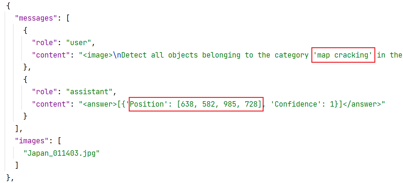 通过对大模型进行微调实现道路病害进行检测,在进行微调之前需要对数据进行一系列处理,使其满足微调格式。