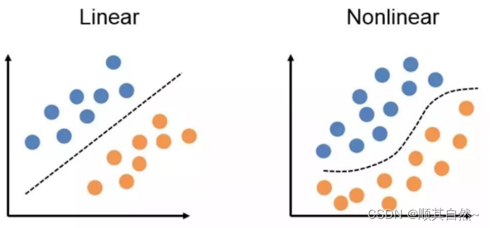 2)它可以应用在一些简单的地方,比如情感分析(积极反应或消极反应)、贷款违约预测(「会违约」,「不会违约」)。在这两种情况中,决策边界都是线性的。