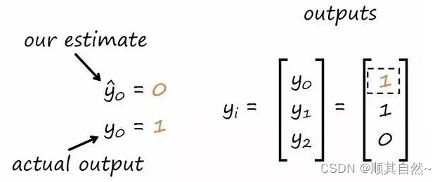 将估计值标记为「y hat」,y hat 的下标 0 对应的是第一行。当然你也可以用 1 表示第一行,这无关紧要,我选择从 0 开始。