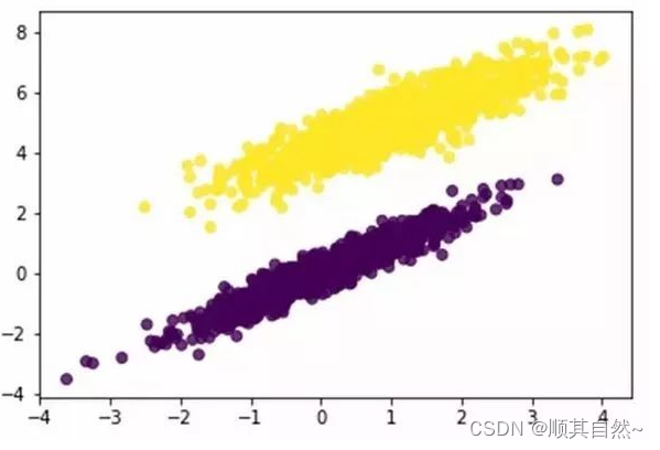 从图中很容易看出来,我们可以用一条直线将数据分开。
