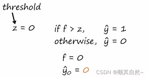 计算出点积后,我们要将它和阈值进行比较。我将阈值定为 0,你可以用这个阈值,也可以试一下其他值。(下面这个函数就是激活函数,只有超过阈值,才算激活)(激活可以理解为打开开关,用手按开关,按到一定力度之后,开关才会打开,灯才会亮)