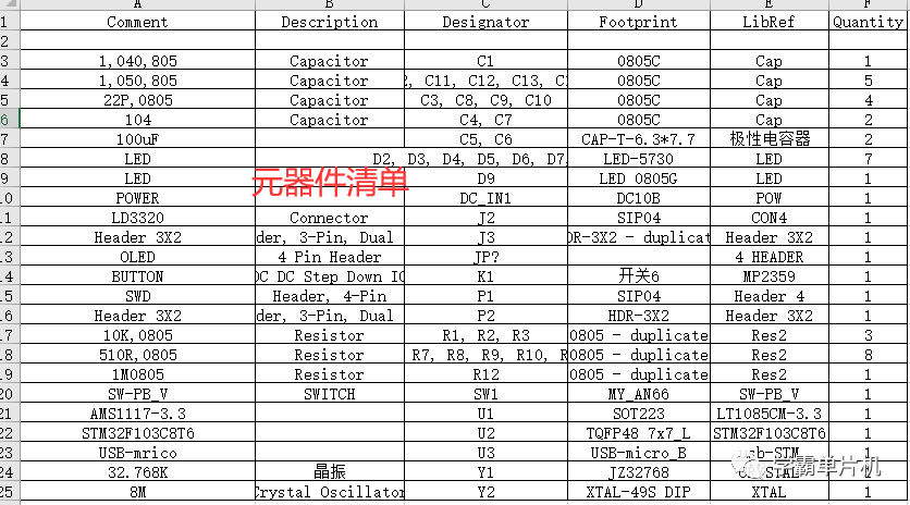 USB接口,提供的5v电压经过ASM1117-3.3v后降为3v3,(10*10^4pF=0.1u)用于电源滤波,高频滤波用小电容,低频滤波用大电容。D3是一个led用以指示电源工况,其上的510R即510.0Ω用以限流,防止led灯烧坏。