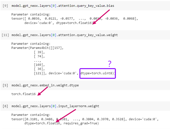 疑问:文档中明明写 load_in_4bit,为什么这里的参数精度是 uint8?