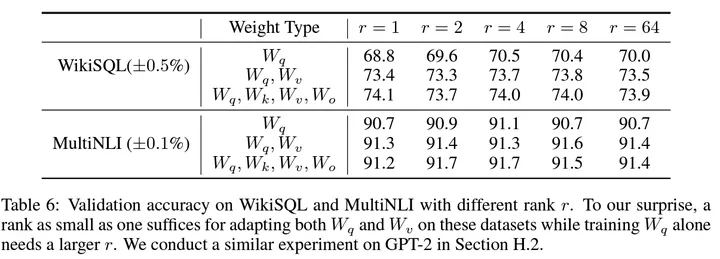 另外,在 Transformer block 中,对哪些参数矩阵的更新量进行模拟?一般是选择自注意力层的 Q, V 矩阵;或者范围更大一些:Q, K, V, O(输出矩阵)。