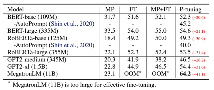 - P-tuning 可以让原本不擅长知识探测的 GPT 可以与 BERT 战成平手(所以论文标题是 GPT understands, too,这是文章的主要卖点)
