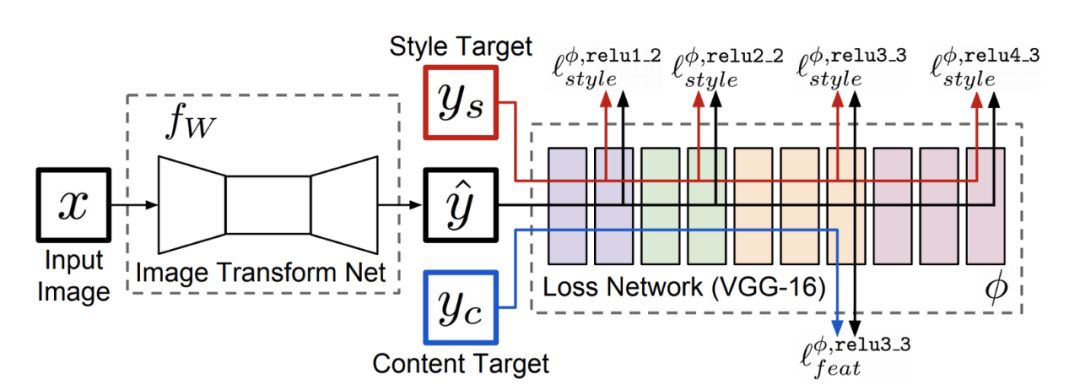 考虑一个图像分类网络如VGG,已经在ImageNet的数以百万计的图像数据集上训练过,第一层的网络往往提取底层的特征(如线,边缘或颜色渐变)而最后的卷积层应对更复杂的概念(如特定的形状和模式)。根据Johnson等人的观点,这些在前几层捕获的低层次特征对于比较非常相似的图像非常有用。