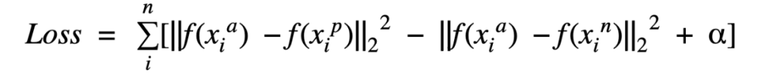 为了训练这样一个网络,他们引入了 三元组损失函数。考虑一个三元组:[anchor, positive, negative] 。三元组损失定义为: