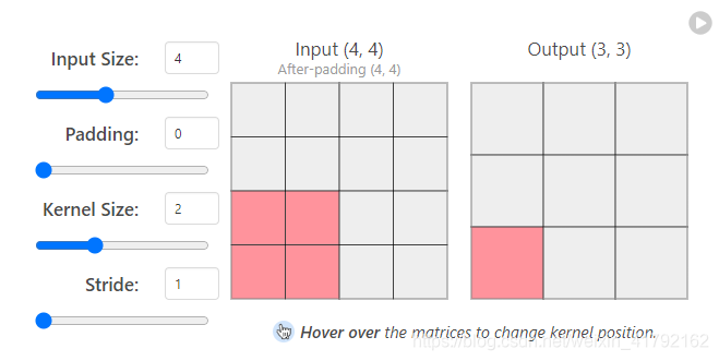 通过一些简单的数学运算,我们能够推断出有 3 x 10 = 30 个独特的内核,每个内核的大小为 3x3,应用于第一个卷积层。 卷积层和前一层之间的连通性是构建网络架构时的一个设计决策,它会影响每个卷积层的内核数。 在可视化周围单击以更好地了解卷积层背后的操作。按照上面的例子,自己尝试一下!