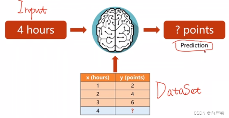 机械学习的过程: 1.准备数据集DataSet——>2.选择模型Model——>3.训练Training——>4.推理Infering