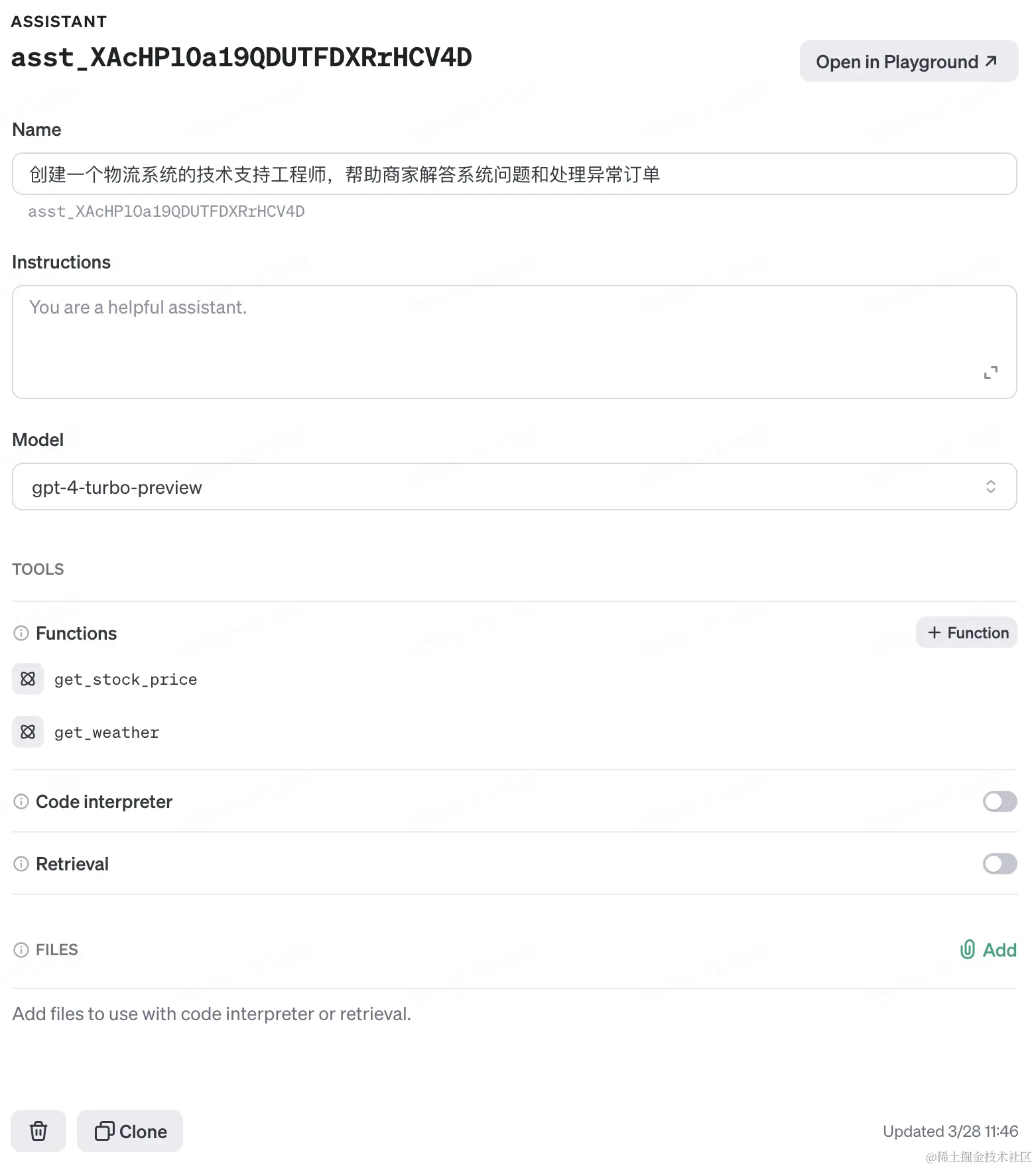 如果你不想依赖于OpenAI的生态平台实现自己的AI应用和商业模式,但又想借助其提供的ChatGPT等基础能力,那么,通过调用其对外开放的API接口一直是最好的选择。因此,OpenAI在推出GPTs的同时,也快速的上线了“Assistant API” 的Beta版本,在这个版本中,你可以实现GPTs中提到的所有“增强”大模型的能力,并通过API的方式将其对外发布,供第三方应用调用,并且支持GPT-4模型(当然调用价格也是不菲),如下图: