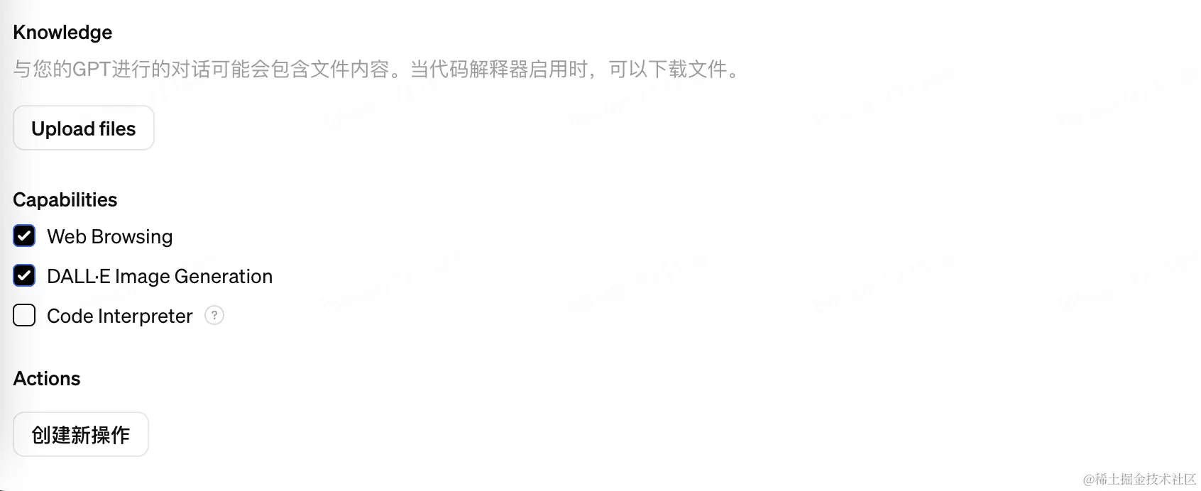 如果你想将自己独有的指令、知识库或任何能力的API服务,同预训练的GPT-4 LLM结合在一起,创建一个“自定义模型”,那么,可以使用“GPTs”插件功能在Open AI的Web应用上快速构建出来。GPTs的推出体现了OpenAI与众不同的工程化创新能力,其交互设计理念值得我们借鉴。使用它的步骤可以参考如下这个例子: