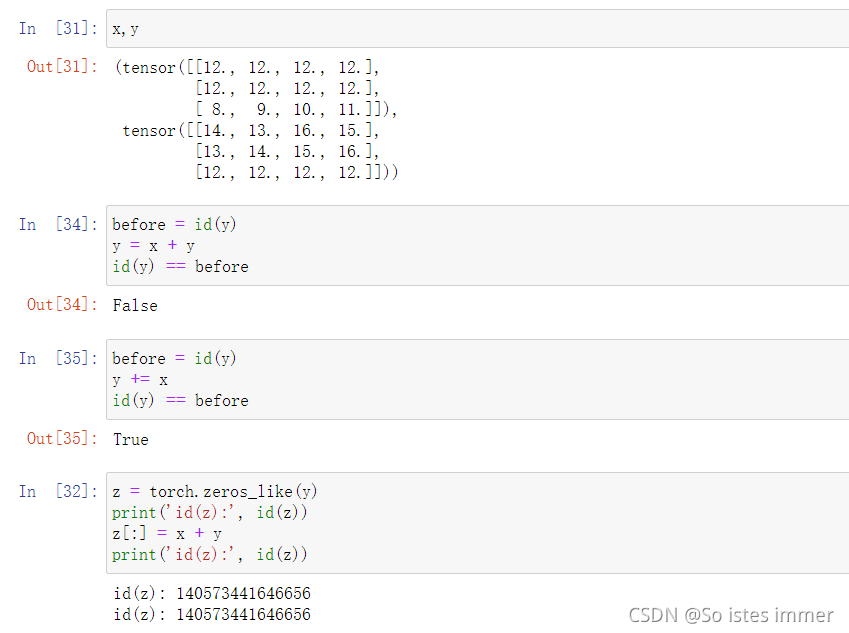 ⑨ 运行一些操作可能会导致为新结果分配内存,如果在后续计算中没有重复使用x,我们也可以使用x[:] = x+y或x+=y来减少操作的内存开销