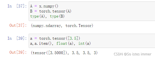 ⑩ 将tensor转换为Numpy张量,将大小为1的tensor转换为python标量