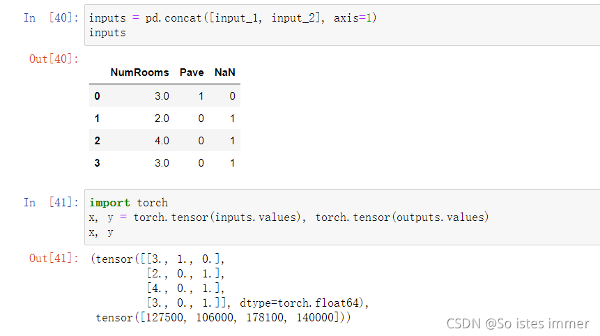 现在inputs和outputs中的所有条目都是数值类型,可以转换为张量格式