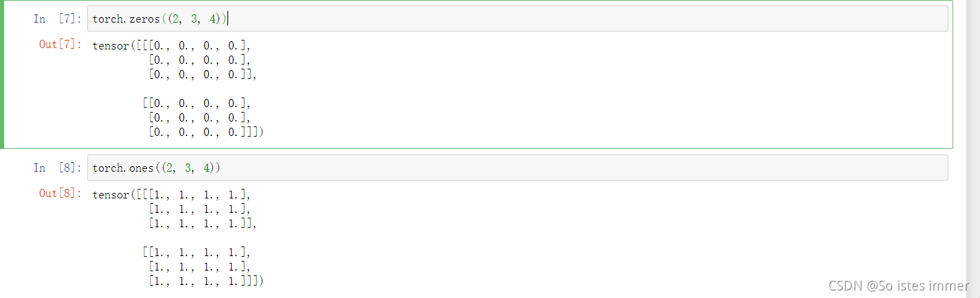 ② torch.zeros()、torch.ones()、自己给tensor赋值