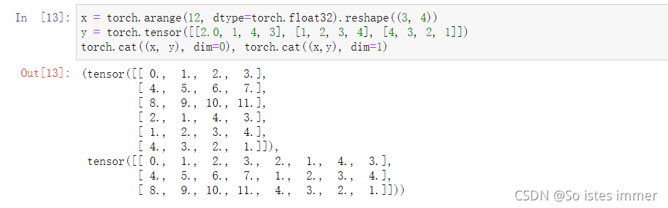 dim=0表示行方向的堆叠, dim=1表示列方向的堆叠