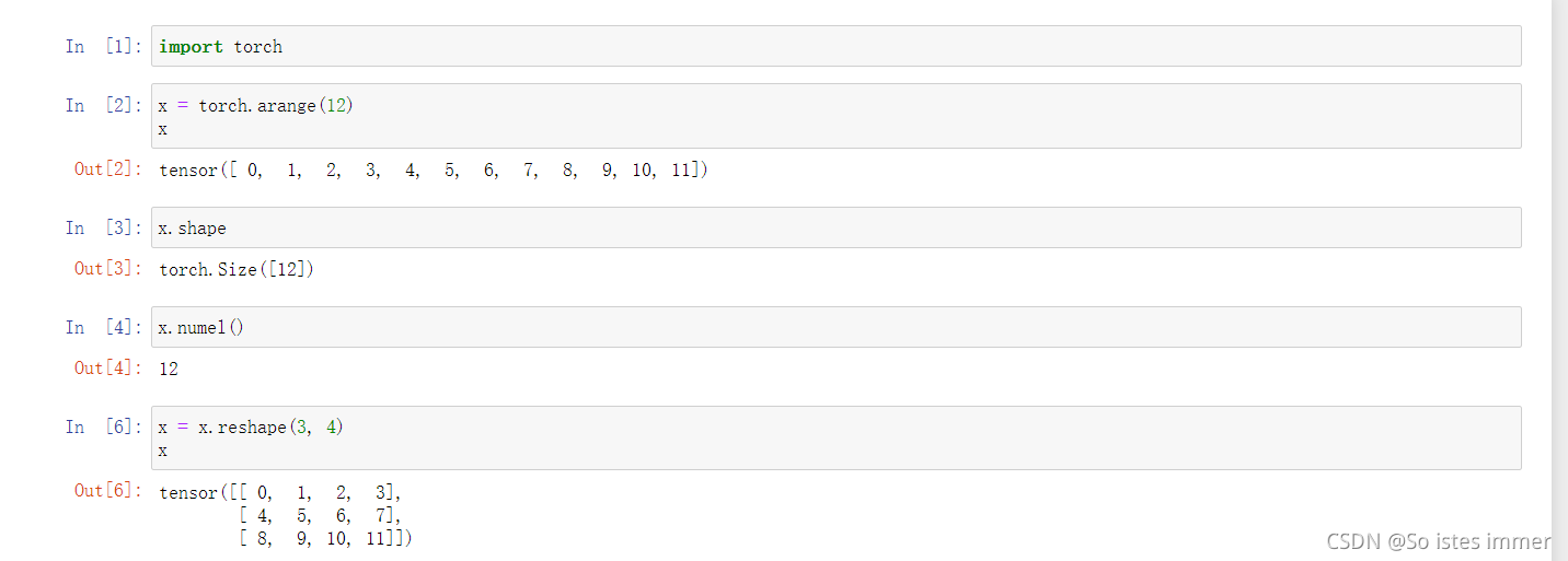用shape属性来访问张量的形状,numel()可用来访问张量中元素的个数