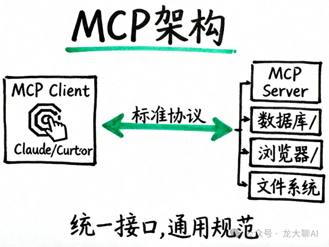 MCP的核心思想:制定统一的规范,让所有AI模型都能用同一套接口调用外部工具。