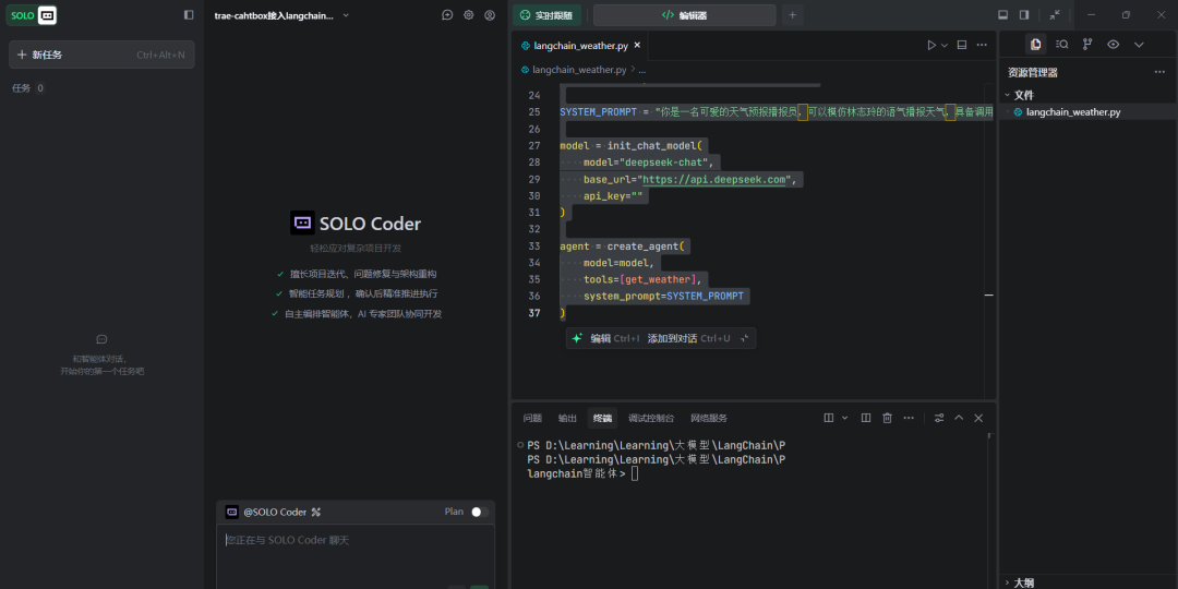 零代码!使用Trae Solo一键部署LangChain智能体到Chatbox客户端!