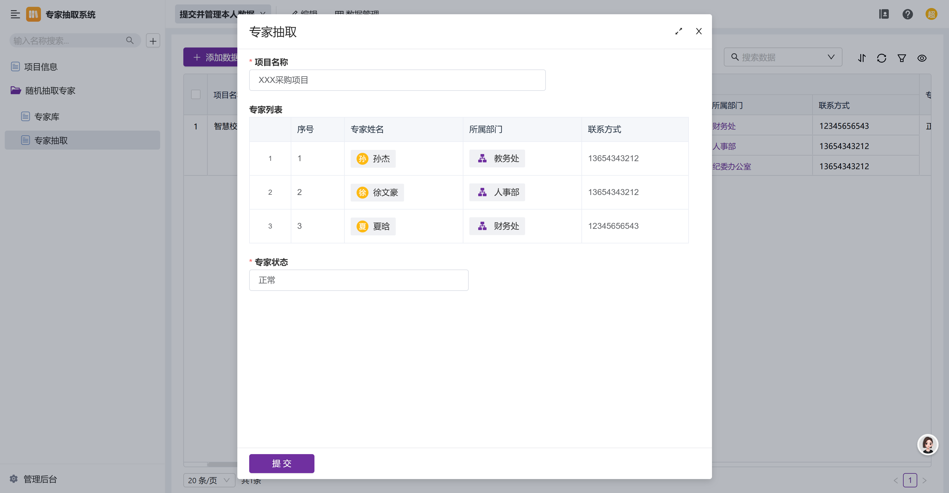 4)根据人员编号进行数据联动抽专家。