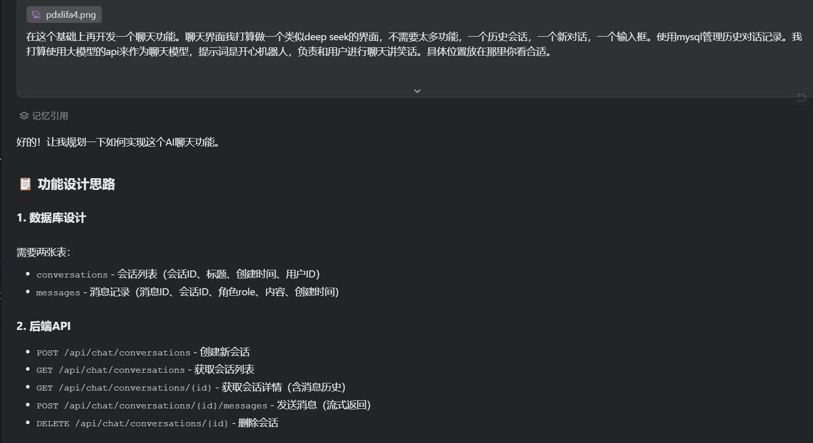 这个时候我想起来mysql都还没有建表,登录认证功能都还没开始做。有开始请ai完善接下来的功能。