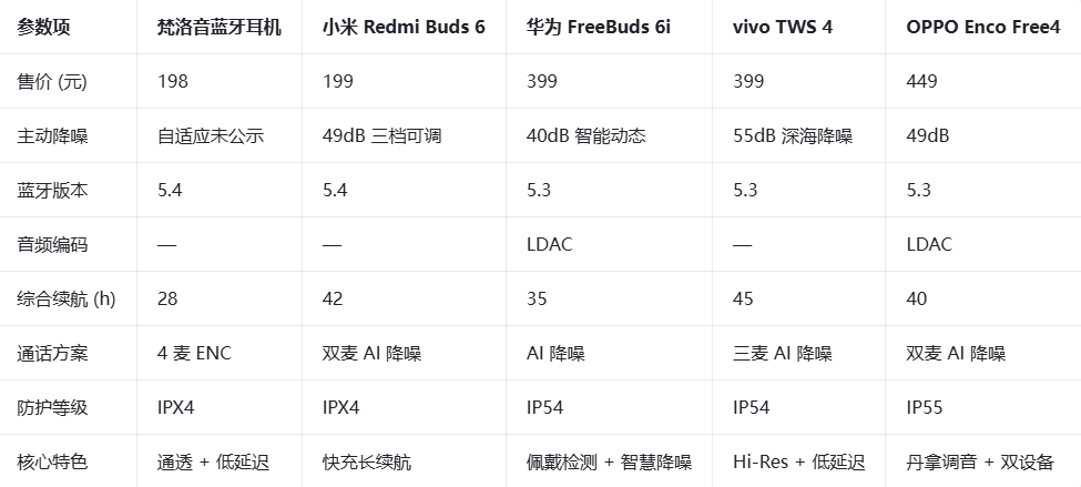 ◦ 追求高性价比与长续航:选择小米 Redmi Buds 6(参数突出,功能实在)。