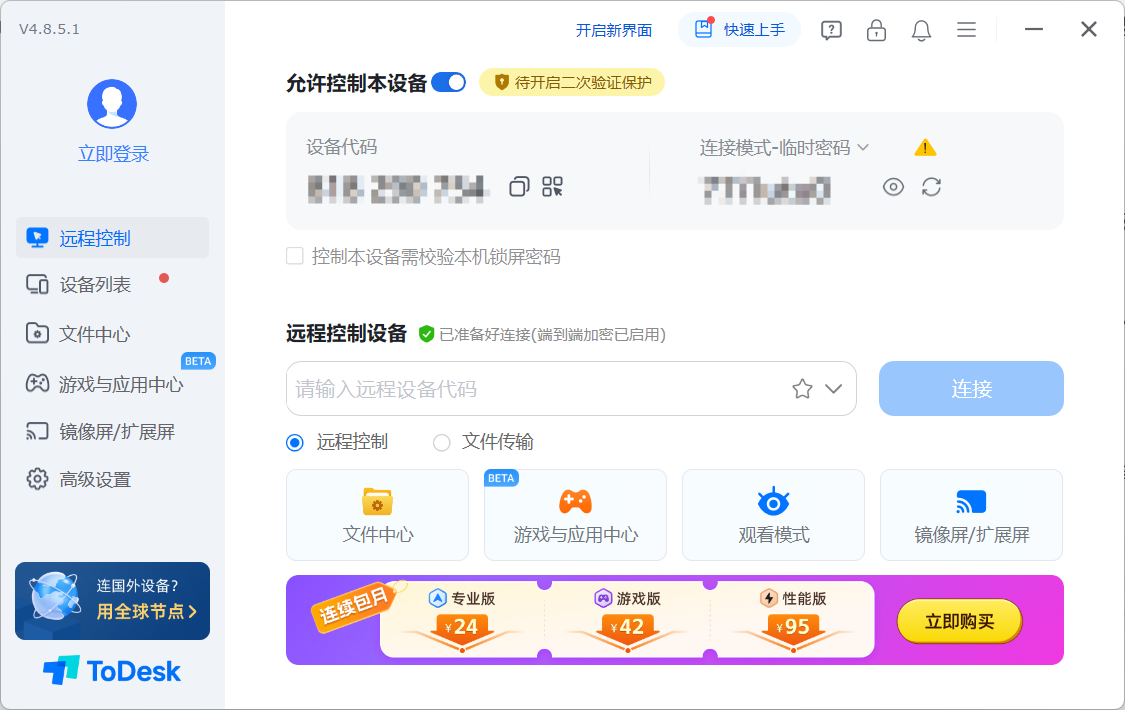 ToDesk:免费版可用但高阶功能、高清画质、高速传输需付费订阅,适合追求全场景覆盖的用户。