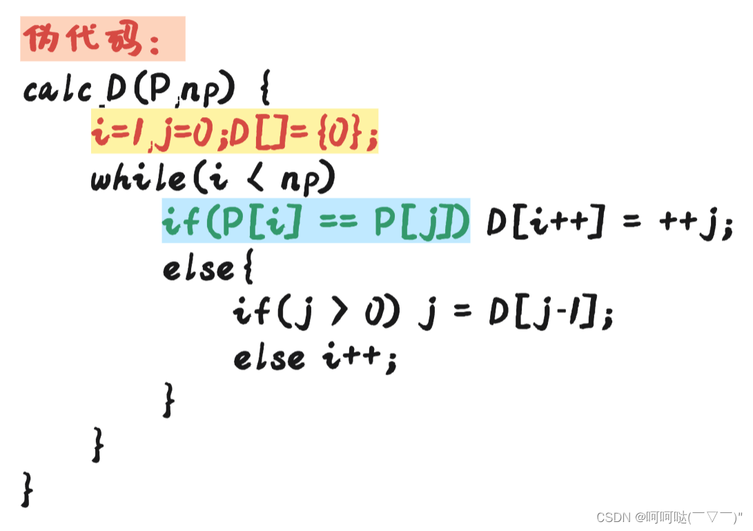 - 1.必须理解 D[j] 的意义:P串的前 j+1个字母,即 P[0]~P[j] 所拥有的最大公共前后缀的长度