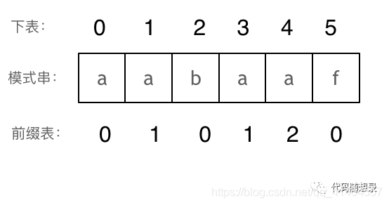 长度为前6个字符的子串aabaaf,最长相同前后缀的长度为0。