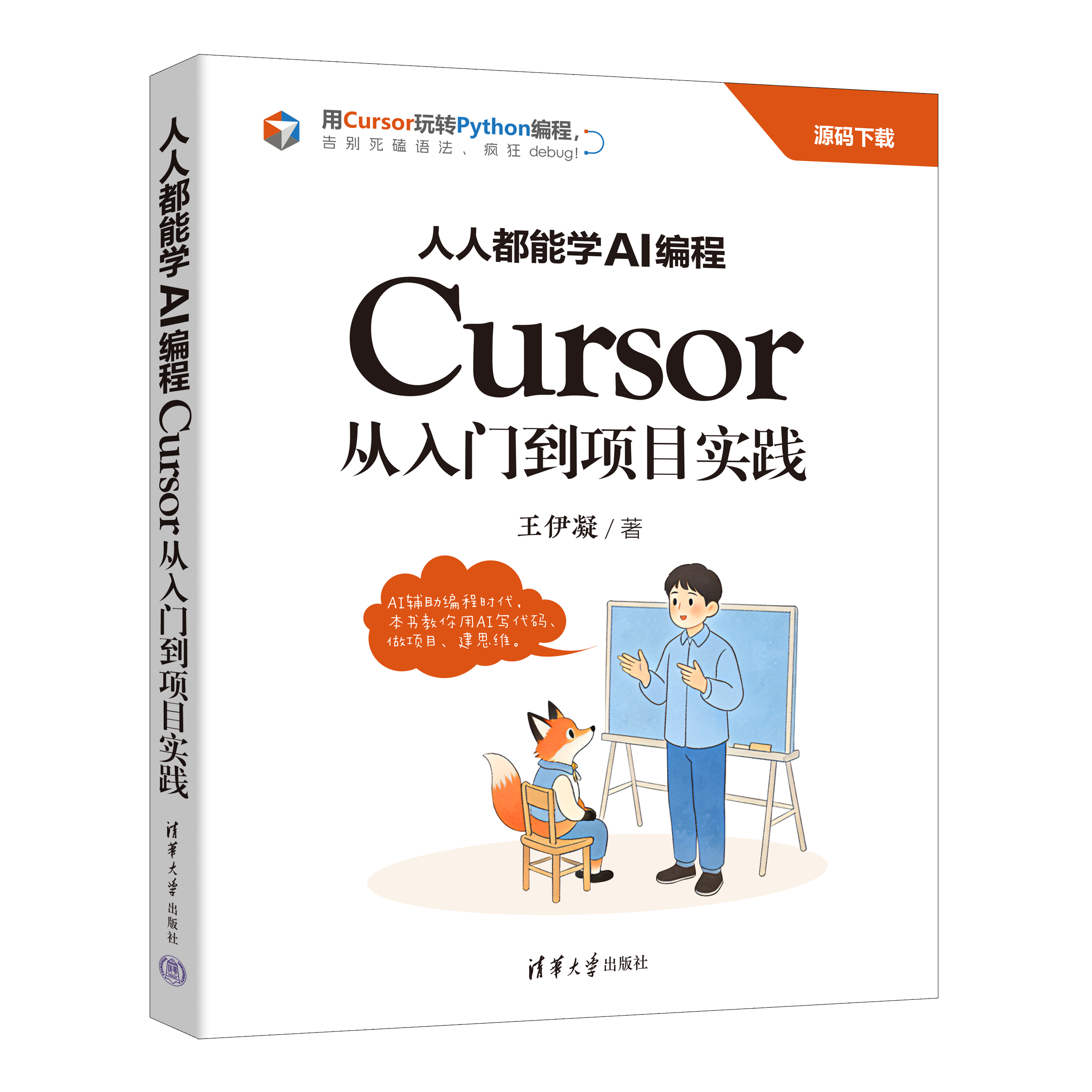 但小白很容易陷入两个误区:一是觉得“编程太难,我学不会”,直接放弃;二是跟风下载AI编程工具,却不知道怎么用,打开工具一脸茫然,最终让工具闲置。而《人人都能学AI编程:Cursor从入门到项目实践》,就是帮小白避开误区、快速上手的关键——它不讲晦涩的理论,全程以“小白视角”,手把手教你从0到1学习Cursor,结合Python实战,让你学完就能用。