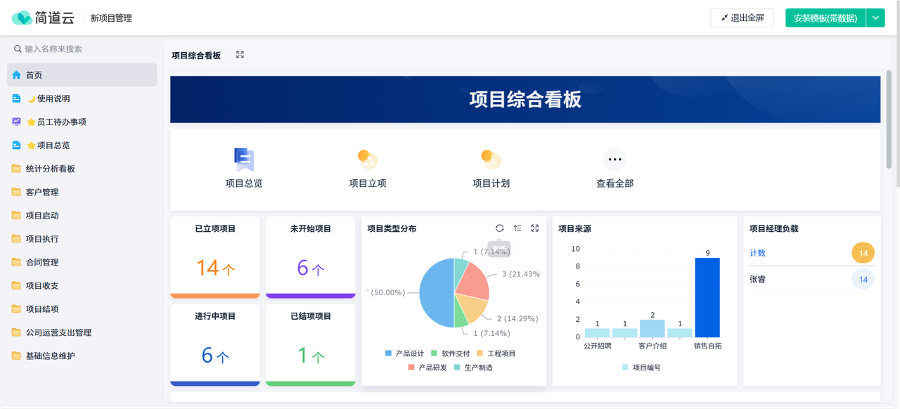 简道云项目管理是专为国内各类企业打造的零代码轻量化项目管理解决方案,无需专业技术开发能力,即可快速搭建贴合自身业务的全流程管理体系。它深度整合了任务拆解与分配、多维度进度跟踪、可视化看板、智能审批流、项目财务核算、合同全生命周期管理、IT 资源调度等核心模块,覆盖项目从立项规划、执行推进、风险管控到验收收尾的完整生命周期。